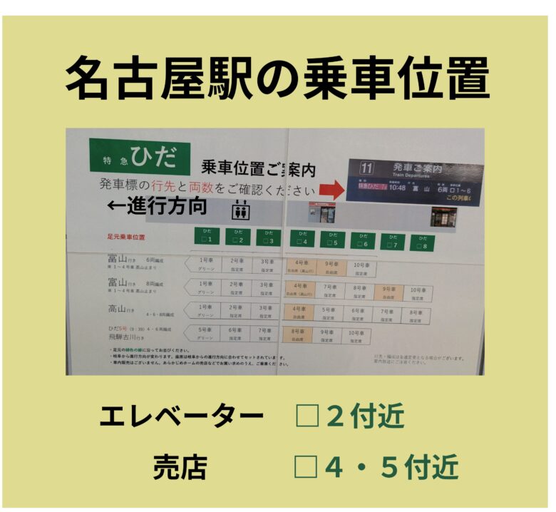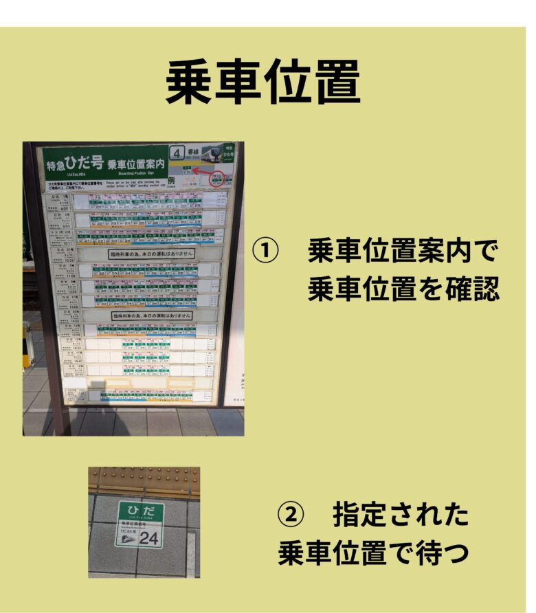 列車の両数によって乗車位置が変わります。わからない場合は駅員に聞きましょう。